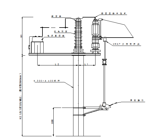 8.2 固定操作机构的槽钢支架和由操作机构到隔离开关导电杆转轴的钢管,不在本装置的供货范围内。均由安装单位现场制作,长度、尺寸现场确定。